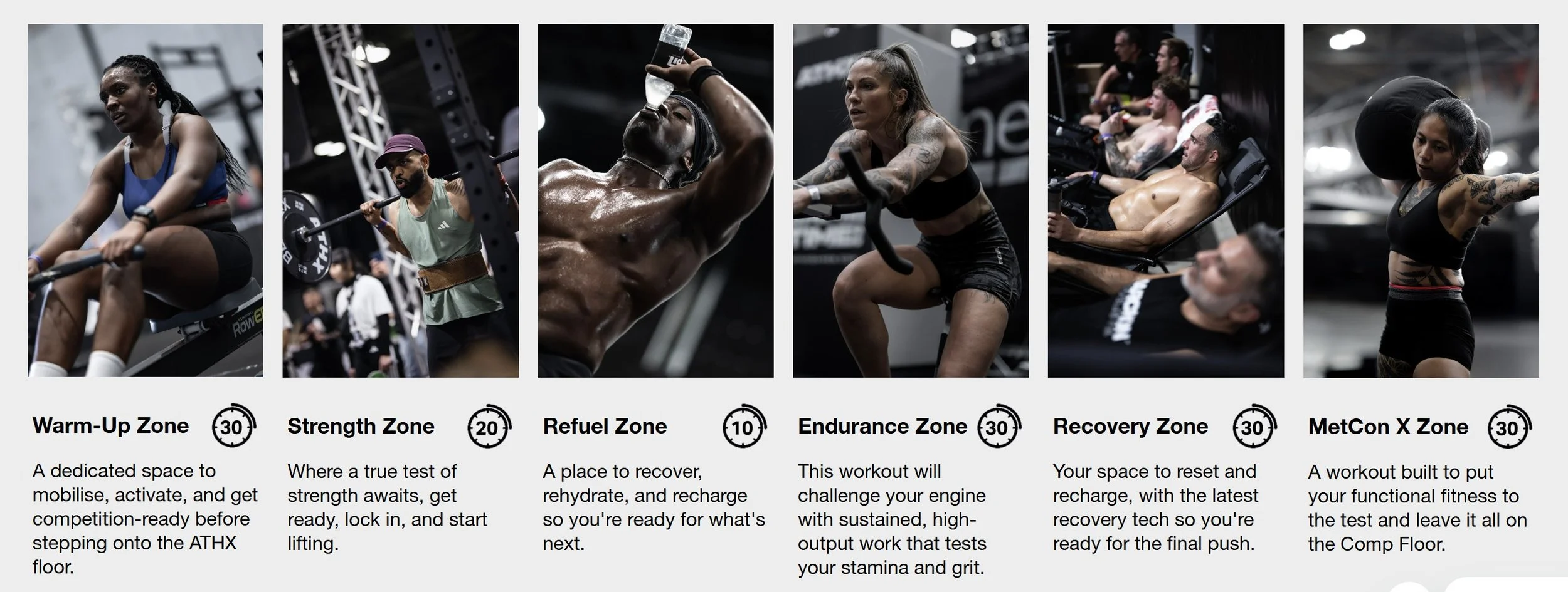 ATHX (ausgesprochen „Ath-X“) ist ein von Adidas unterstütztes Wettkampfformat im Functional-Fitness-Spektrum. Der Wettbewerb besteht aus mehreren aufeinanderfolgenden Zonen (z. B. Strength, Endurance, Metabolic) mit geplanten Refuel-/Recovery-Phasen. ATHX ist eine 2,5-Stunden-Fitnesscompetition, die aus 6 Stationen besteht.
